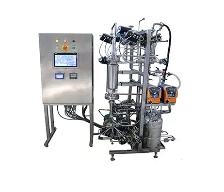 - possibility to include a programmed cleaning cycle that is fully automated (employing PLC, sensors, valves) with recirculating detergent and rinse solutions